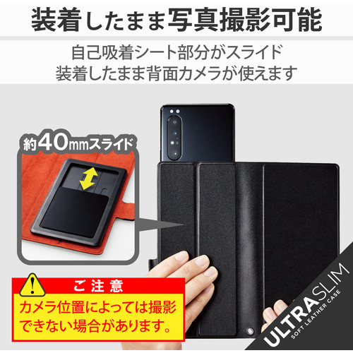 ●自己吸着シートが上下にスライドできるのでカバーを装着したまま写真撮影が可能です。