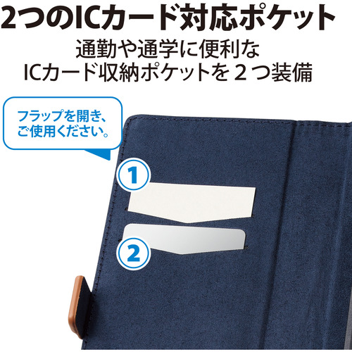 ●フラップ内側に2つのポケットが付いており、ICカードなどの収納に便利です。