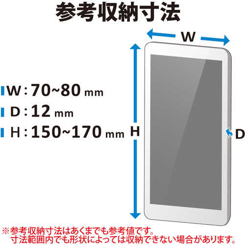 参考収納寸法(幅×奥行×高さ):約70〜80×12×150〜170mm