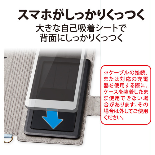 ●スマートフォンがピタッとくっつく自己吸着シートを採用し、機種を選ばず使用できます。