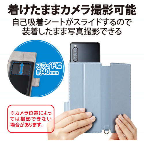 ●自己吸着シートが上下にスライドできるのでカバーを装着したまま写真撮影が可能です。
