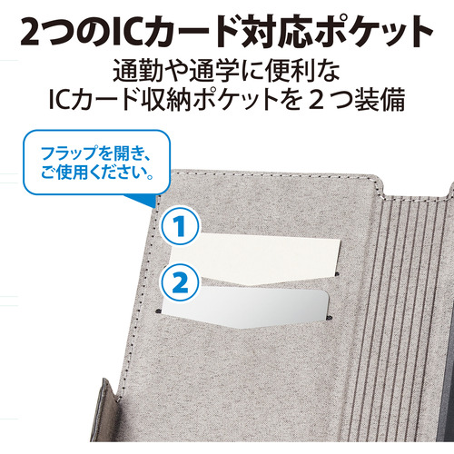 ●フラップ内側に2つのポケットが付いており、ICカードなどの収納に便利です。