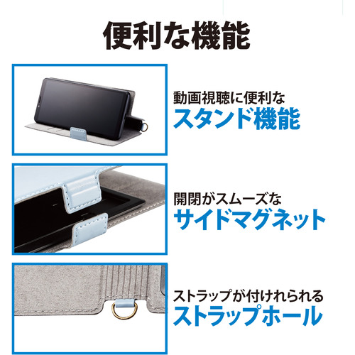 エレコム P-05PLFY2SBU スマートフォン用マルチレザーケース スライド式 手帳型 モダン×カジュアル 磁石付き Lサイズ ブルー P05PLFY2SBU