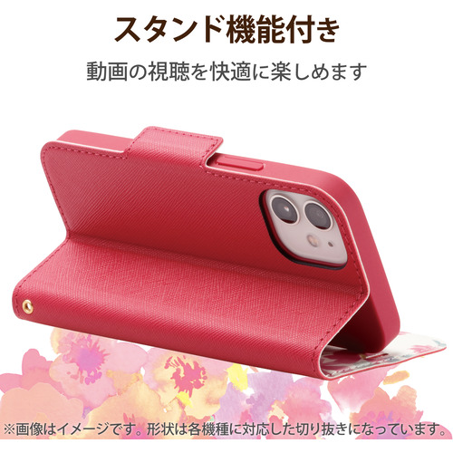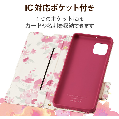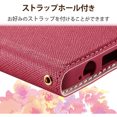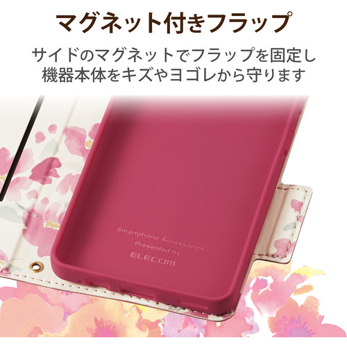 エレコム PM-S221PLFUJPND AQUOS sense6s(SHG07) AQUOS sense6 レザーケース 手帳型 UltraSlim Flowers 薄型 磁石付き ディープピンク PMS221PLFUJPND