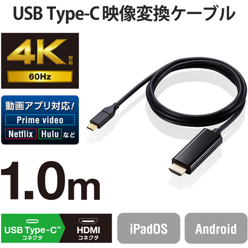 エレコム MPA-CHDMI10BK 映像変換ケーブル/USB Type-C-HDMI/ミラーリング対応/60Hz/1.0m/ブラック MPACHDMI10BK