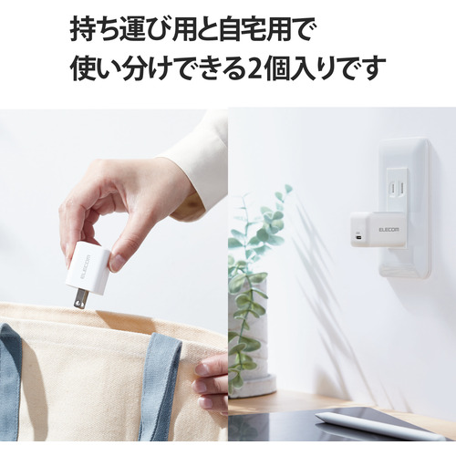 エレコム MPA-ACCP27WH AC充電器/USB充電器/USB Power Delivery準拠/20W/USB-C1ポート/固定プラグ/2個セット/ホワイト MPAACCP27WH