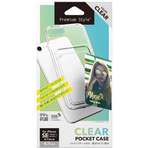 PGA PG-22MCTP01CL iPhone SE(第3・2世代)/8/7/6s/6用 ポケット付 抗菌TPUケース クリアPG22MCTP01CL