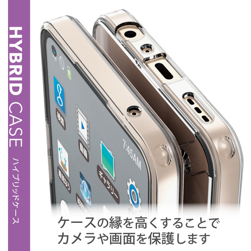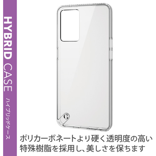 ●側面に弾力性のあるTPU素材を、背面に強じんで透明度の高いポリカーボネート素材を使用した、スリムなスタイルのOPPO Reno7 A(OPG04)用ハイブリッドケースです。