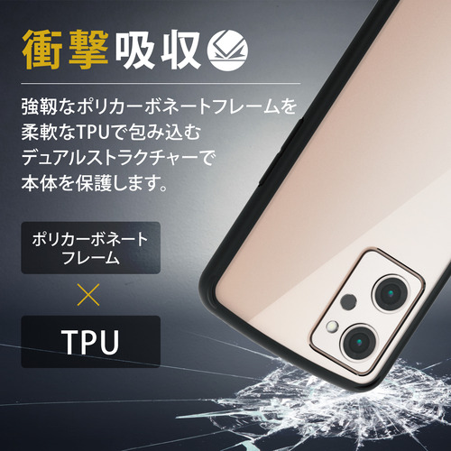 エレコム PM-O221TSLFCBK OPPO Reno7 A OPG04 ケース カバー ハイブリッド ストラップホール付 TOUGH SLIM LITE 背面クリア フレームカラー ブラック