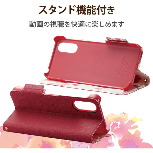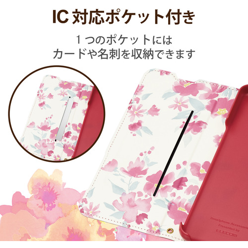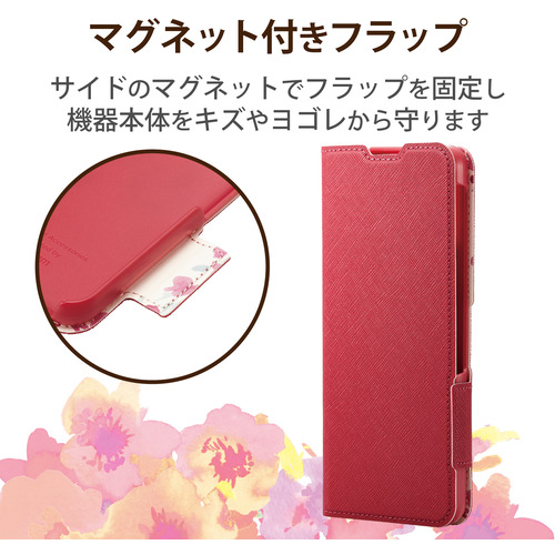 エレコム PM-S224PLFUJPND シンプルスマホ6 ケース カバー レザー 手帳型 マグネット フラップ 耐衝撃 超軽量 スリム 薄型 ストラップホール付 カードポケット UltraSlim 花柄 ポリカーボネート ディープピンク