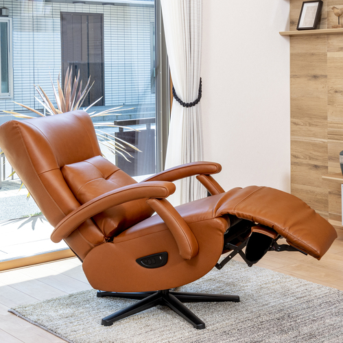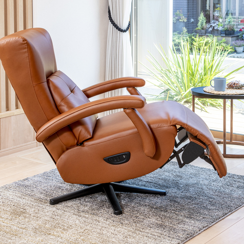 ヤマダオリジナル [幅68]電動パーソナルチェア 本革 「YEPC190005LBR」 ライトブラウン 電動リクライニングチェア