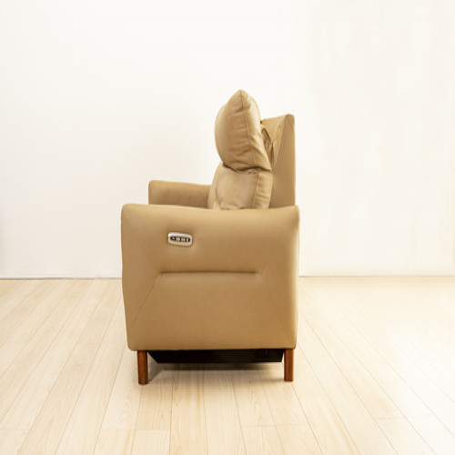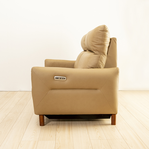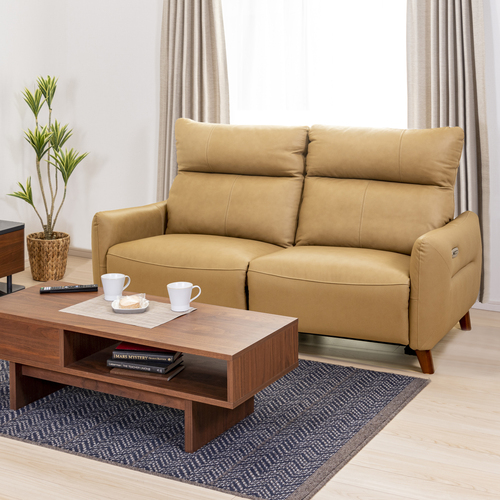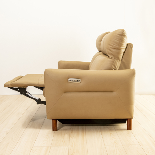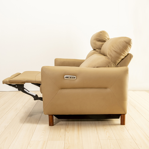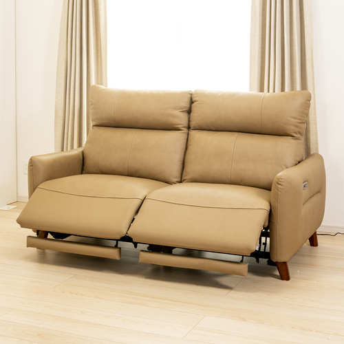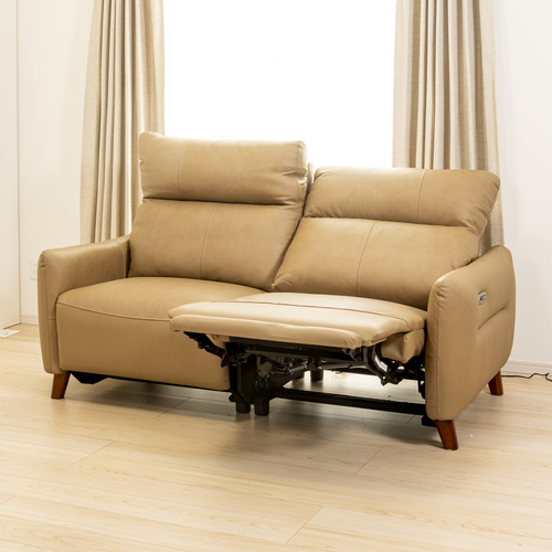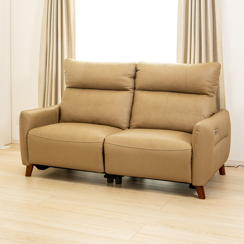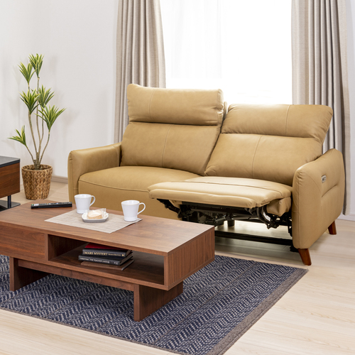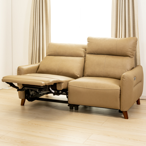 ヤマダオリジナル [3人掛]電動リクライニングソファ 「YES140011LMO3Pカワ」幅180 本革ライトモカ色 ポケットコイル内蔵