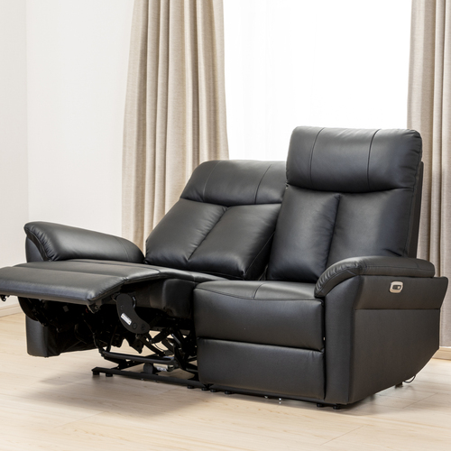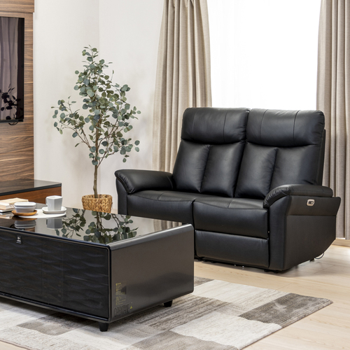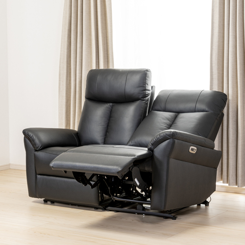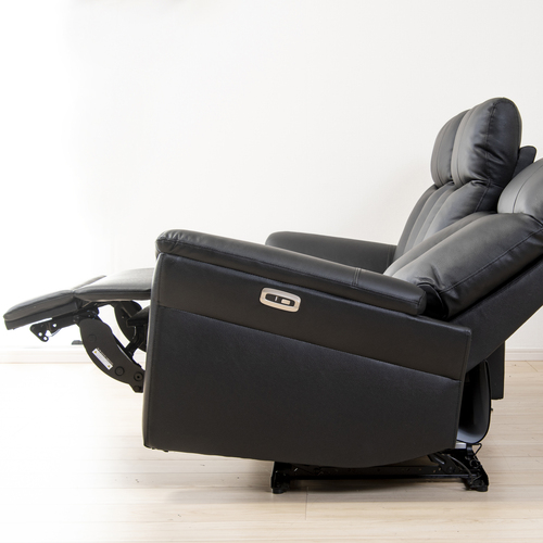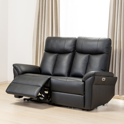 ヤマダオリジナル [2人掛]電動リクライニングソファ 「YES140013BK2Pカワ」幅147cm 本革ブラック色 ポケットコイル内蔵