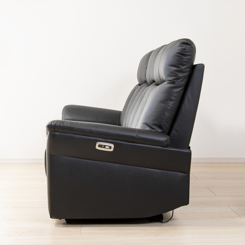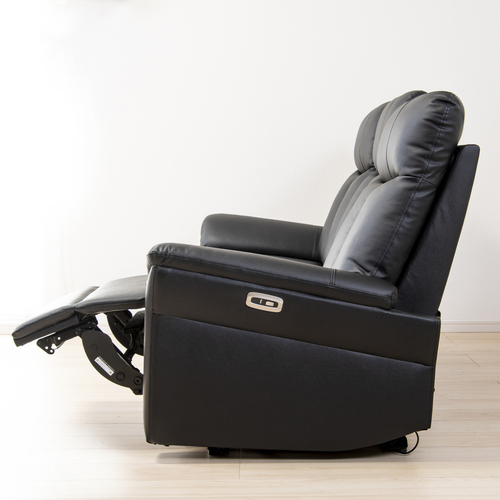 ヤマダオリジナル 電動リクライニングソファ「YES140013 BK2P」幅147cm 2人掛け 本革ブラック色 シート:ポケットコイル内蔵 サイドテーブル付き