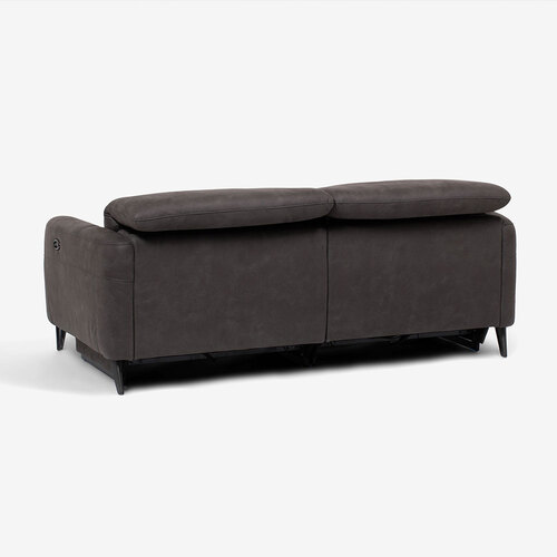 コンパクトな外寸と、ゆったりとした2シーターの座面。側面のスイッチでフットレスト、リクライニングの調整ができます。張地は布張りですが、特殊な表面加工によりヴィンテージレザーのような肌触りを感じさせるソファです。