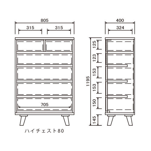 サイズ(単位:mm):幅805x奥行400x高さ1195/脚高140