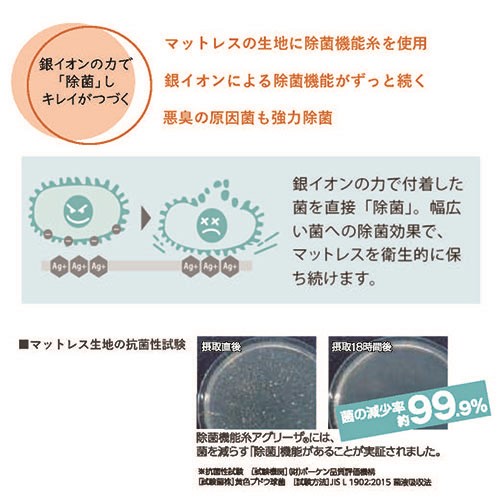 機能:防ダニ・抗菌防臭加工、除菌効果(アグリーザ)