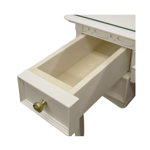その他仕様:・厚さ5mmのガラストップ付き/・1200Wの1口コンセント付き/・中央引出し内底板フェルト貼り/・右引き出し内に仕切り板1枚付属