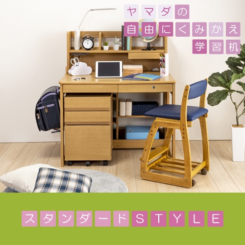 ヤマダオリジナル 自由にくみかえ学習机 ライトブラウン 学習椅子ライトブラウン/ネイビーセット LEDデスクライト付き