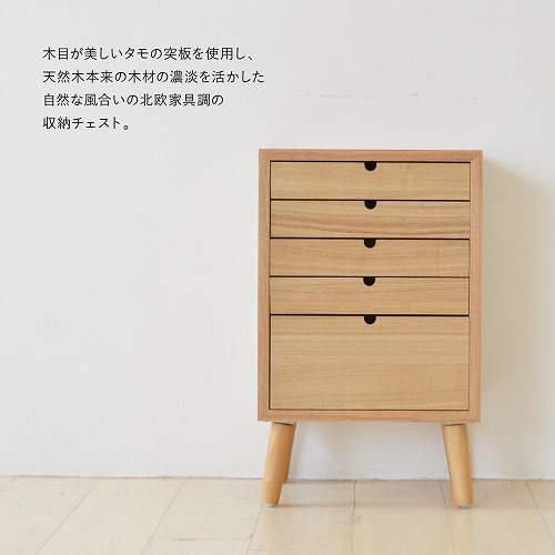 木目がキレイなタモの突板仕上げのチェスト