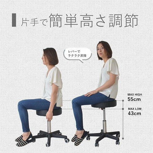 昇降レバーで簡単調節、定番の昇降スツールです。