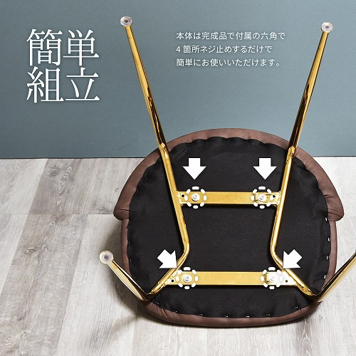 素材:【座面】ウレタン・合板 【生地】PUレザー 【脚/フレーム】スチールパイプ(ゴールドメッキ塗装)