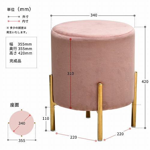 B.Bファニシング ONSU-0073PNK マーメイド円柱スツール W355×D355×H420mm ピンク ONSU0073PNK