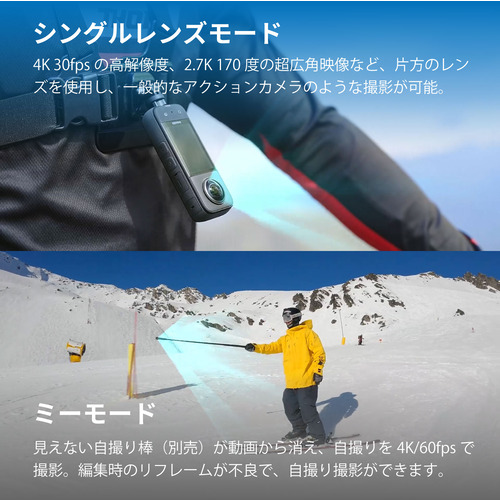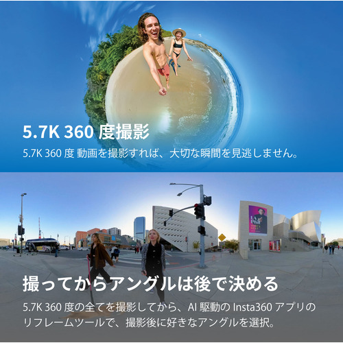 X3は鮮明な5.7K 360度動画撮影でき、大切な瞬間を見逃しません。指先の操作で360度映像が撮影でき、クリエイティブな可能性が無限大です。