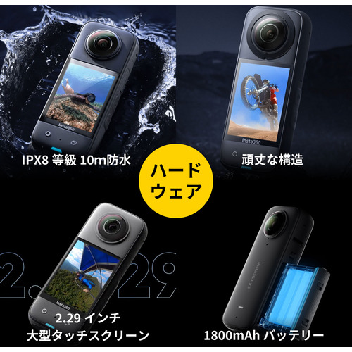 Insta360 CINSAAQ/B Insta360 X3 360度アクションカメラ 7200万画素 5.7K撮影 プレビュースクリーン搭載