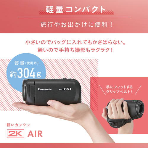 ・本体質量約261g(同梱バッテリー込み質量約304g)の軽量化を実現。さらに小型なので、バッグに入れても場所をとりません。・上品で落ち着いた黒色なので発表会からアウトドアまで撮影場所を選びません。
