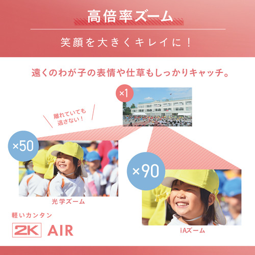●被写体にぐっと寄れるiA90倍ズーム搭載。軽いカンタン使いやすい 2Kモデル登場。