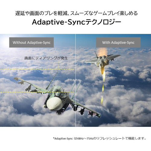 (Adaptive-Sync/FreeSyncは48Hz〜75Hzのリフレッシュレートで機能します)