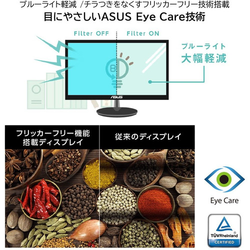 また、ASUSのブルーライト軽減機能は、ドイツの第三者調査機関であるTUV Rheinlandの認証を取得しており、安心して使用できます(認証ID:0000047351)。 【仕様】