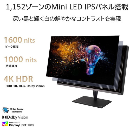 ASUS Smart HDRテクノロジーを搭載しており、Dolby Vision、HLG、HDR-10を含む複数のHDR (high-dynamic-range)フォーマットとPQカーブをサポートしています。