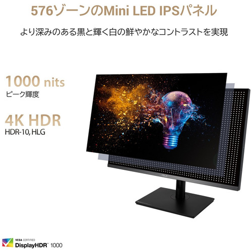 PA32UCR-K は、ビデオグラファー、映画製作者、カラーリストなどのコンテンツクリエーター向けに設計された32型4K HDRモニターです。 1,000 nitsのピーク輝度とミニLEDバックライトにより、576分割のローカルディミングを制御し、複数のHDRフォーマットに対応します。量子ドット技術、DCI-P3、Rec.709、Rec.2020および Adobe RGB色空間のサポートします。