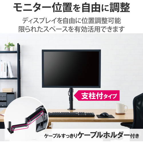 エレコム DPA-SL06BK モニターアーム(シングルアーム/ロング(支柱)/スプリング式) ブラック DPASL06BK