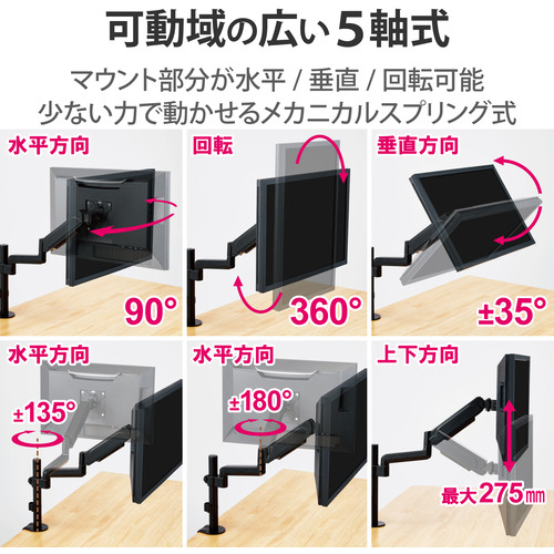 ●メカニカルスプリング式なので少ない力でモニターの上下調整をスムーズに行うことができます。