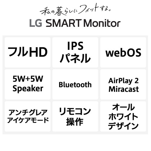 LGエレクトロニクス 27SR50F-W 27型 スマートモニター IPS フルHD オールホワイト&スリムデザイン アンチグレア 27SR50FW