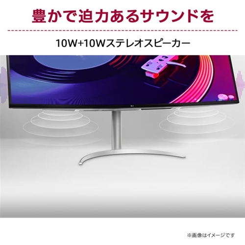 ●10W+10Wの高出力ステレオスピーカーを搭載。PCや映像機器と接続するだけで、迫力ある鮮明なステレオ音声をお楽しみいただけます。