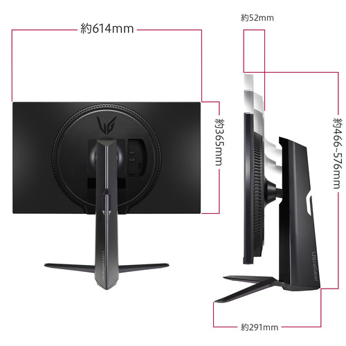 ●外形寸法(幅×高さ×奥行き)/重量:スタンドあり:614 × 466〜576 × 291(mm) / 7.2kg