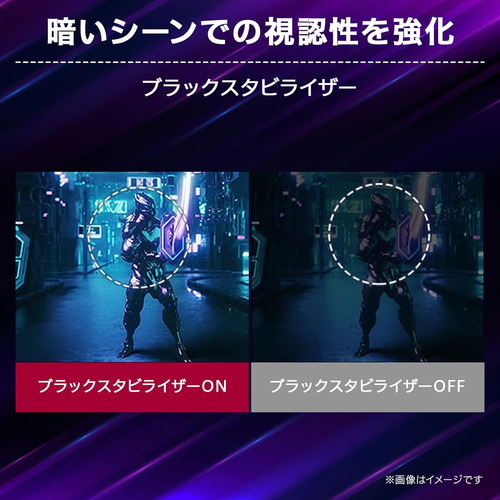 暗くて見えにくい部分を認識して明るく映し出すことで、闇に潜むターゲットが見つけやすくなり、ゲームを有利に展開することができます。また、ユーザーの好みに合わせて明るさを調整いただけます。