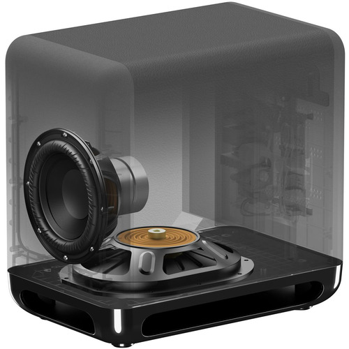 サブウーファーには部屋の隅やソファーの後ろにも置けるように、スピーカーケーブルの配線が不要なワイヤレス接続を採用しています。