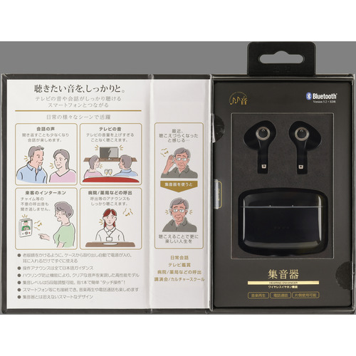 たのしいかいしゃ TA-HN1BK Bluetoothイヤホン機能付き/集音器 イヤホン部/ケース部3.7V 40mAh ブラックTAHN1BK