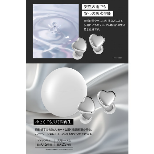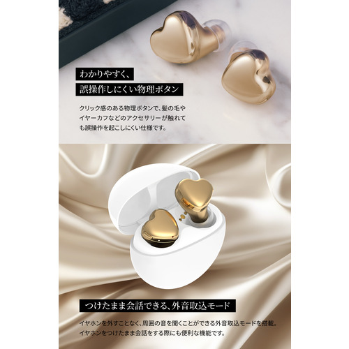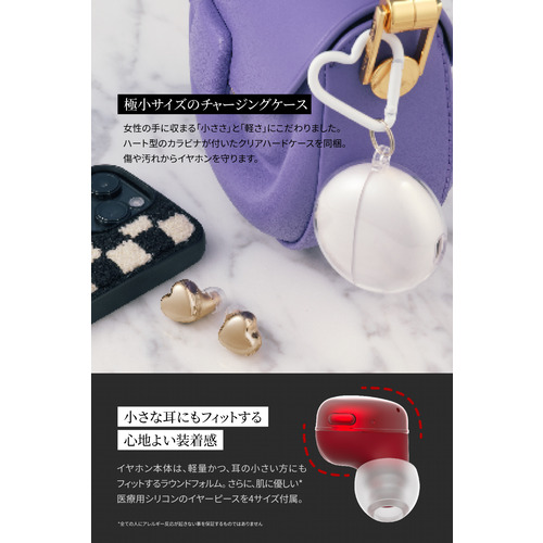 フィット感を追求した小型・軽量 設計のハート型ワイヤレスイヤホン
