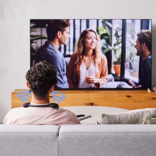 ネックスピーカーを肩にのせるだけの手軽さで、映画・ライブ映像の視聴時にまるでその場にいるような新たな視聴体験をもたらします。耳をふさがない形状なので長時間の動画視聴も快適です。耳元で音が広がるので隣家や周囲への配慮で大きな音を出しづらい環境でも、迫力のサウンドで楽しめます。