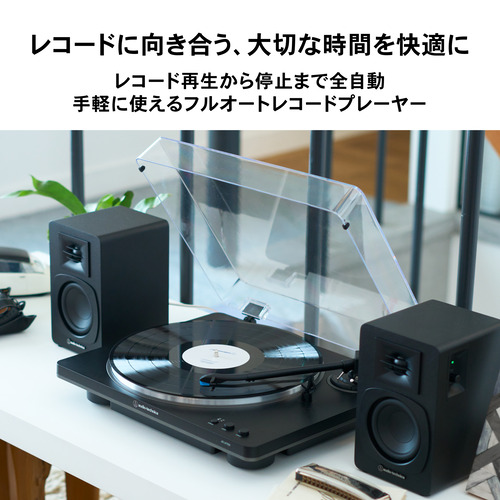 フォノイコライザーを内蔵しているため、付属のオーディオケーブルをお持ちのアクティブスピーカーやアンプにつなぐだけで準備完了。追加機器を購入することなく、簡単な接続ですぐに再生できます。