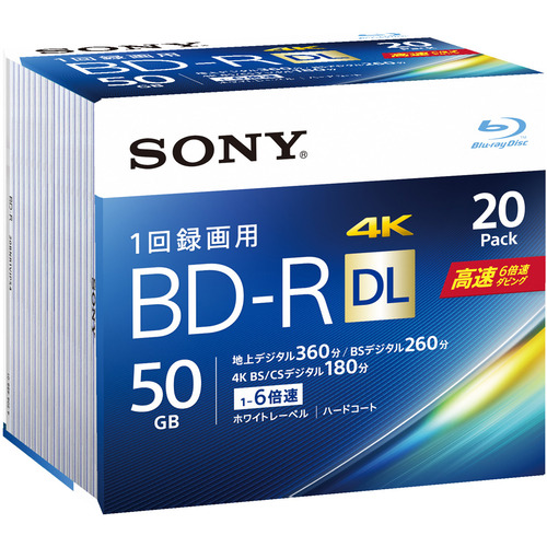 ソニー 20BNR2VJPS6 ビデオ用BD-R(一回録画)50GB6倍速20枚パック