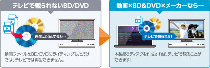 パソコンに保存された動画ファイルから、TVやディスクプレイヤーで再生可能なブルーレイやDVDを作成。ディスクメニューも作成できます。