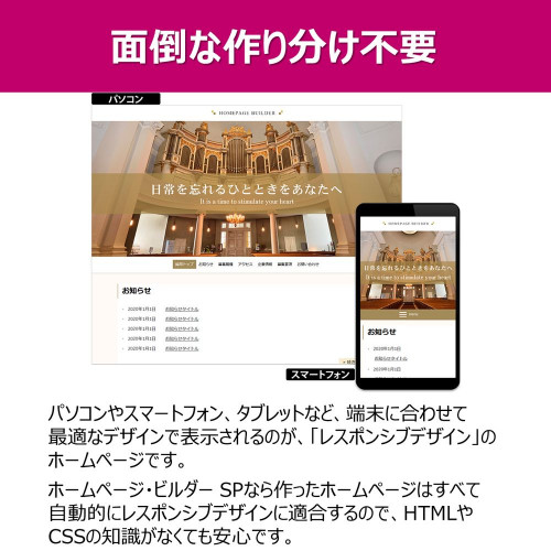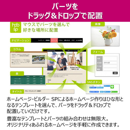 PC・スマートフォン用ホームページ作成ソフトの決定版。テンプレート・画像素材・SEO対策ソフト付属。