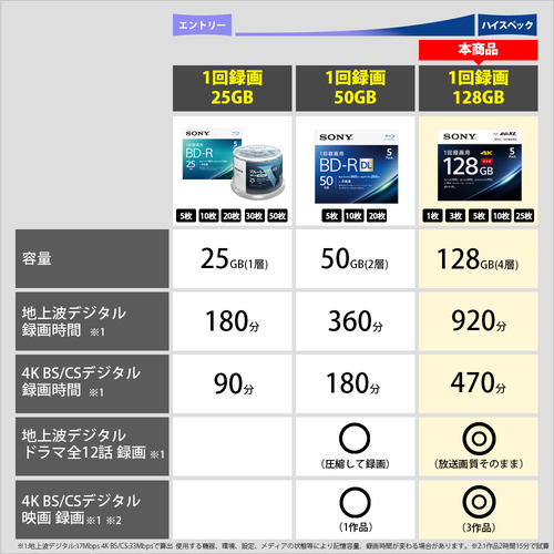 ソニー 10BNR4VAPS4 BDメディア128GB ビデオ用 4倍速 BD-R XL 10枚パック ホワイト